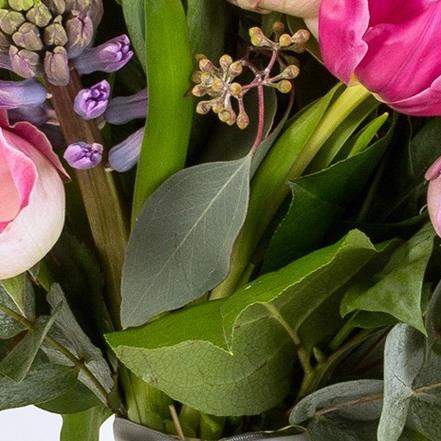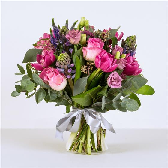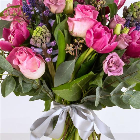 A Delightful mix of roses, tulips and hyacinths.